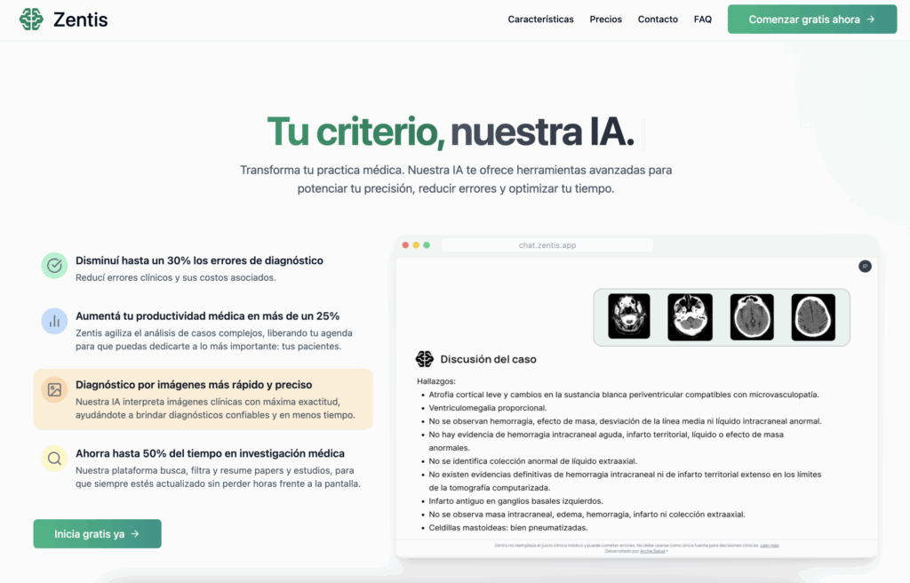 A diferencia de otros modelos conceptuales, Zentis ya está operativo en contextos reales de consulta médica en Latinoamérica, contribuyendo a mejorar la calidad del acto clínico con una integración fluida y respetuosa del juicio profesional.